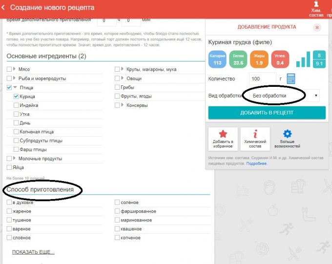 рецептов? Если я в ингредиенты забиваю свежие\сырые продукты, а