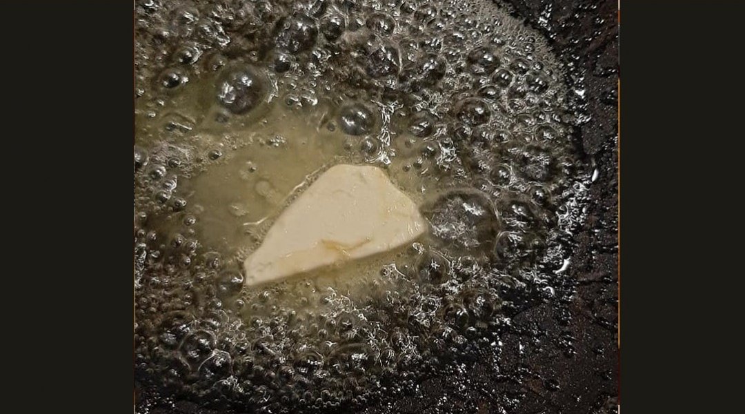 прогрелось, кладем сливочное, не наоборот. Сливочное масло, все же,