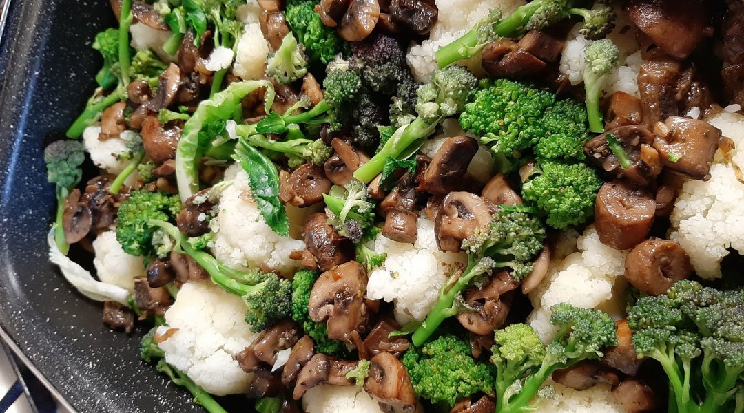 перемешиваем на сильном огне, после этого добавляем грибы, из них