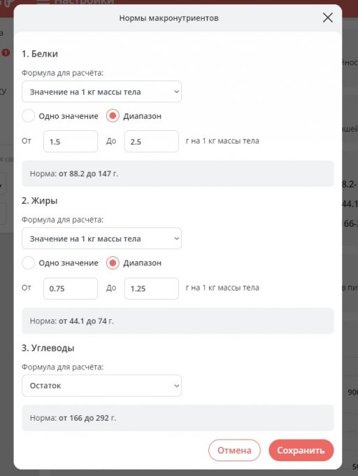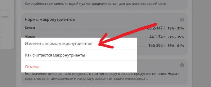 2. Выбираете "Изменить нормы макронутриентов";