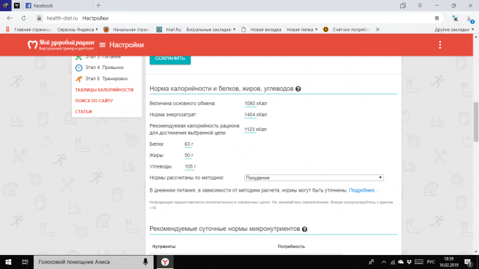 был отвес? Без физнагрузки программа выдаёт норму 1080 ккал, я