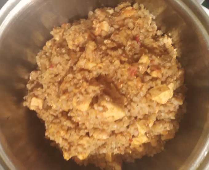 Калорийность - 144.4 кКал; белки - 11.1 г; жиры - 6.6 г; углеводы - 9.7 г на 100 г.