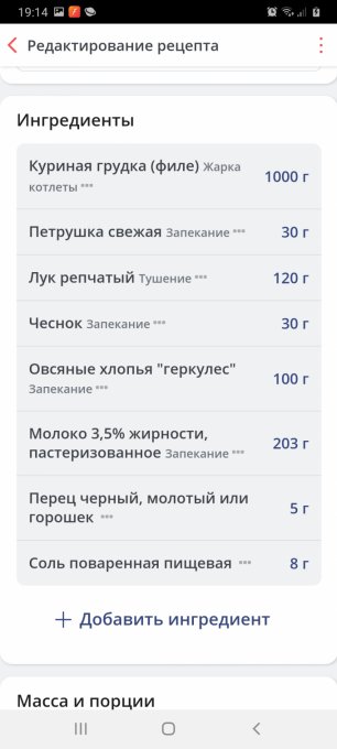 | Куриная грудка (филе) (Жарка) | 650 г |
