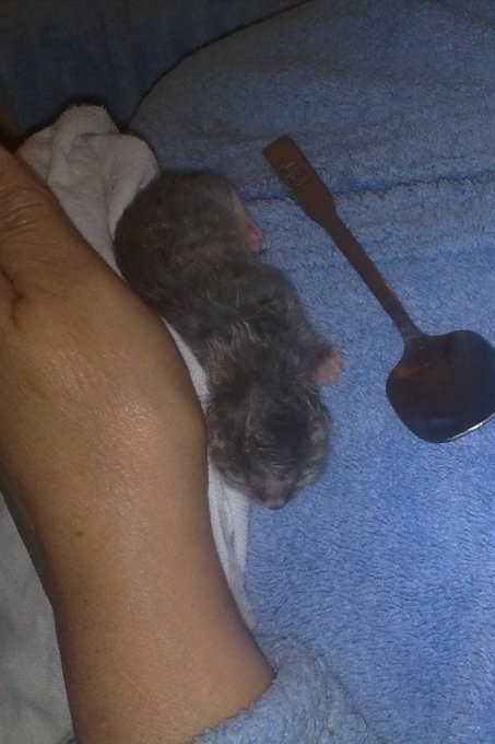 пушистые, нашли новорожденной с неотсохшей пуповиной кормили