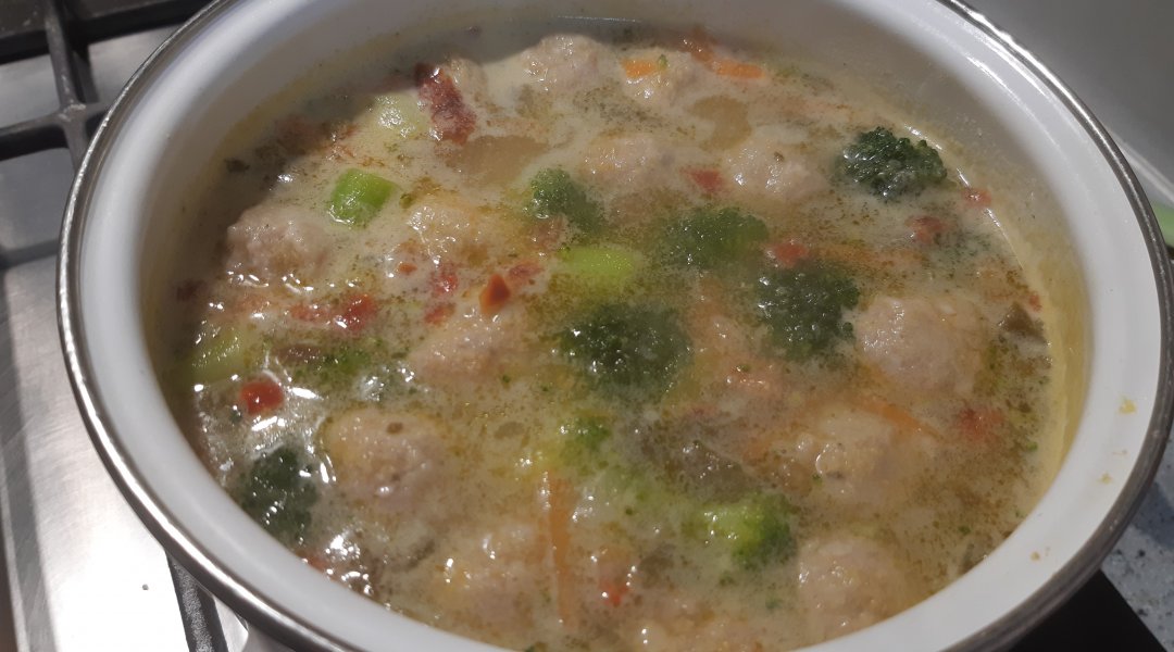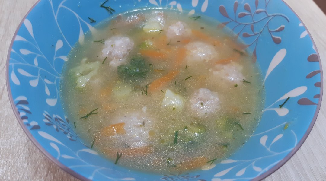 Когда фрикадельки всплывут ,положить Брокколи и варить минут 5,затем добавить укроп и чеснок,довести до кипения,выключить и оставить настояться