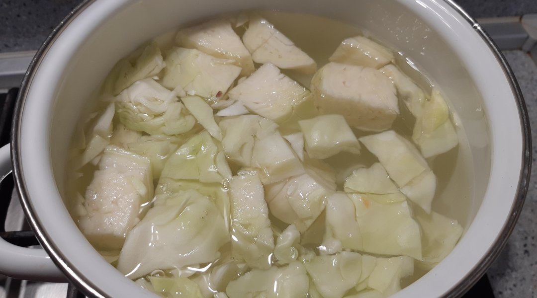 Добавить в бульон с грудкой капусту,проварить минут 10-15