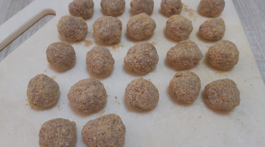 Сформовать фрикадельки и запанировать их в измельченных семенах льна