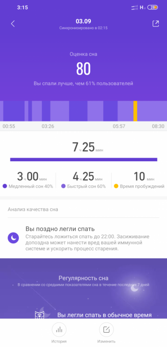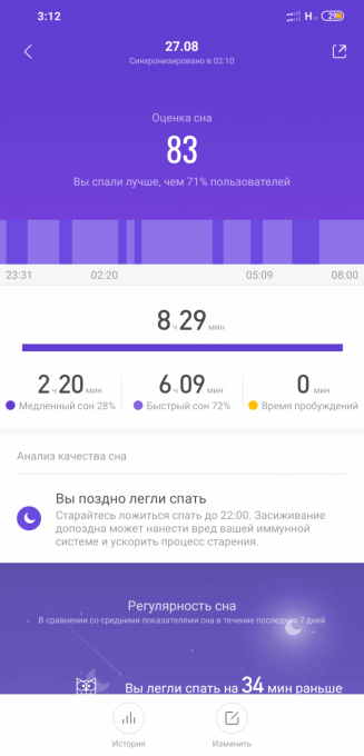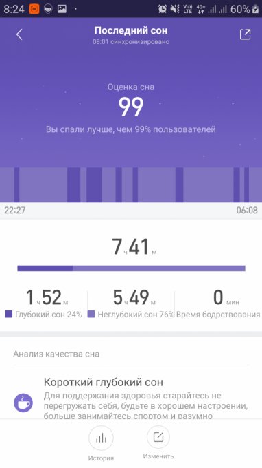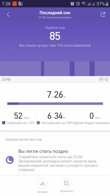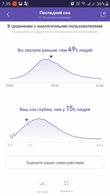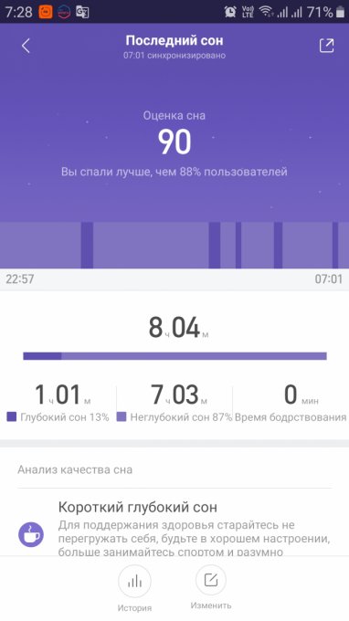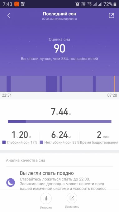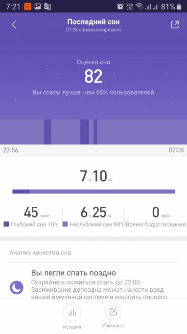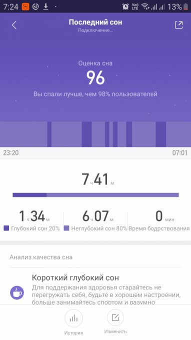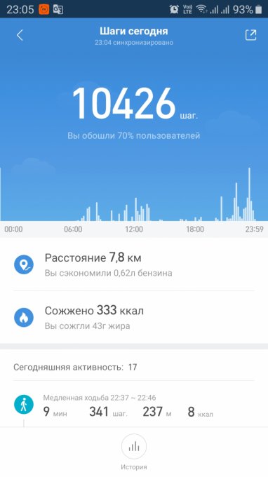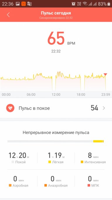 вечером 67 уд/м. Неплохо! На фото отчет браслета о сегодняшней