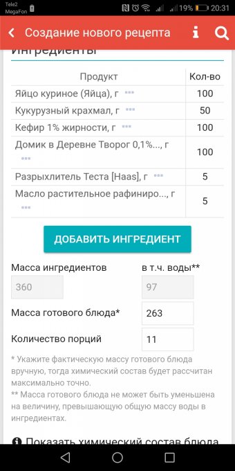 программе вес готового блюда в 120 гр проставить не даёт. Как