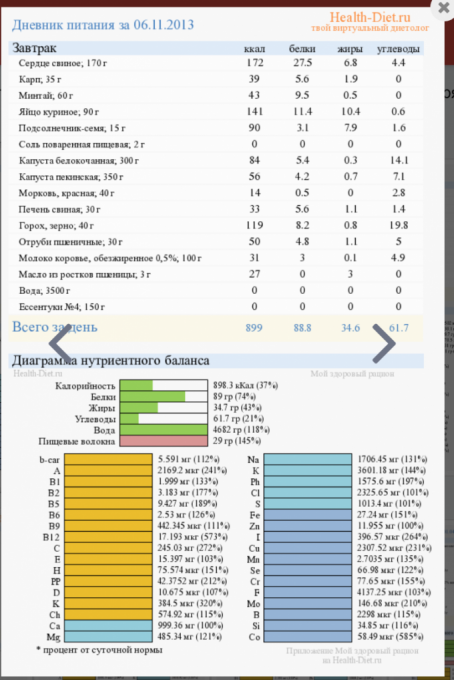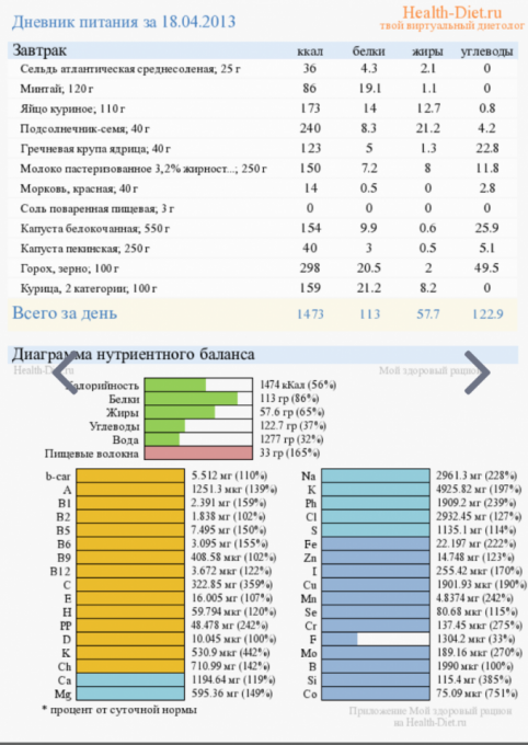на день продуктами ПП из расчета 400 гр овощей и/или