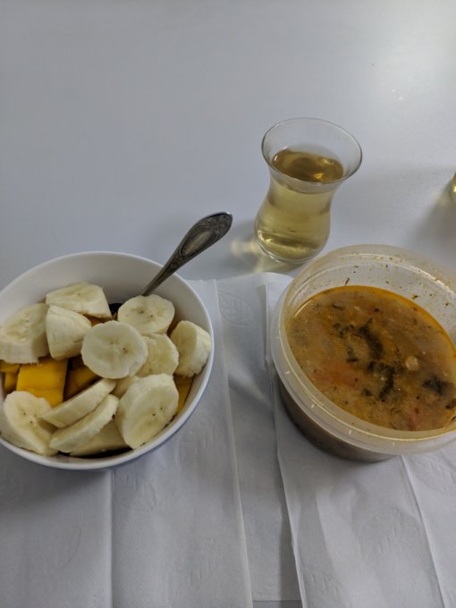 Добрый день. Обед и ужин. Супчик, фрукты на обед. На ужин куриная котлета из рубленого мяса+ капуста и брокколи