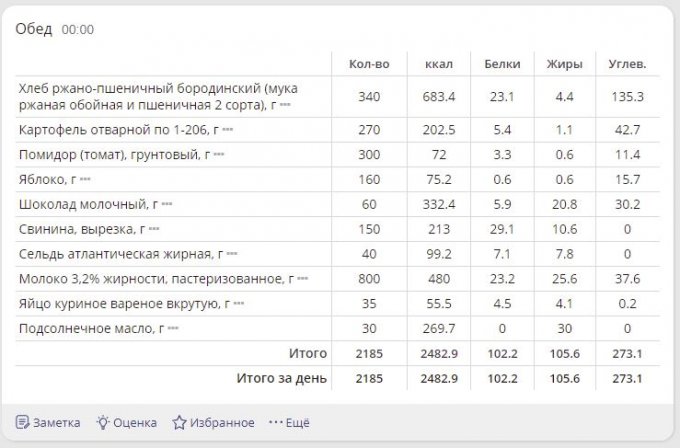| Итого за день | 4005 | 2150 | 106 | 116 | 165 |