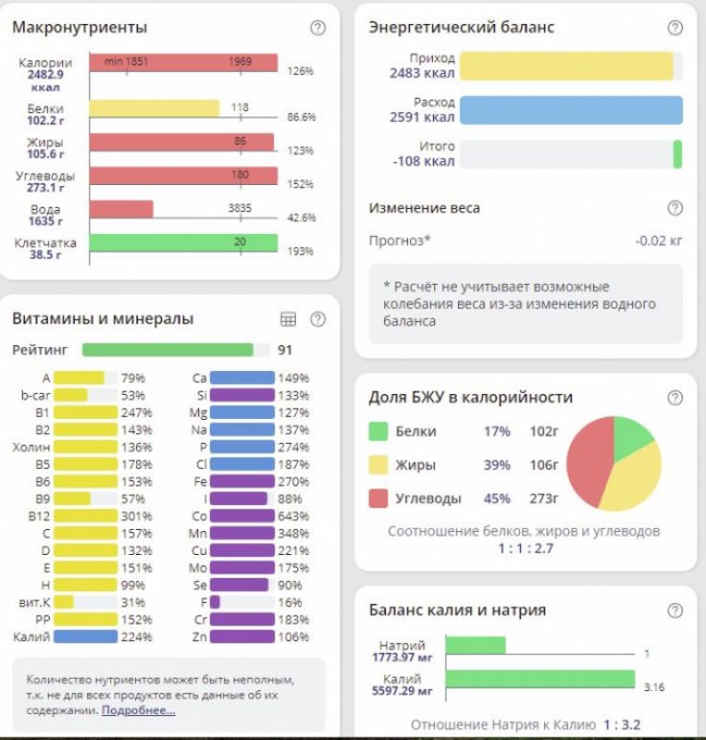 | Итого за день | 3498 | 2189 | 100 | 119 | 170 |
