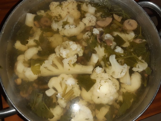 Суп цветная капуста с грибами и травами