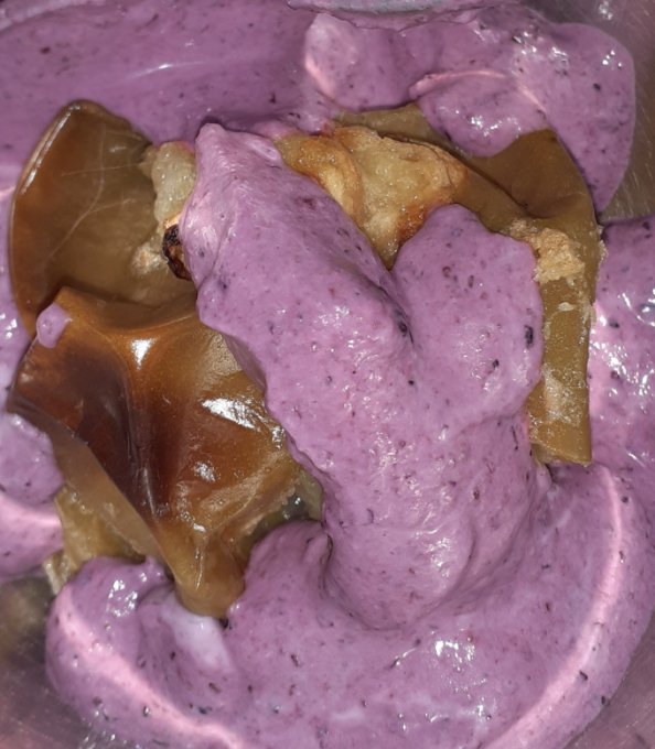 Печёное яблоко с творогом, черникой,мёдом  и т.д,яблоки, уродливые, но с дерева. Сырыми не рискнула, печеное днем съела, нормально
