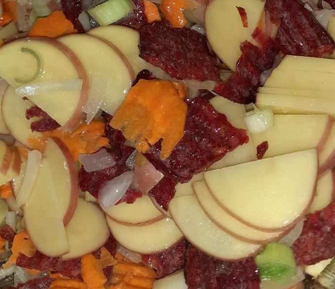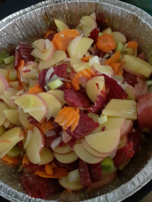 Пока сырое, картошка, свекла,морковь, лук репчатый, лук порей и в аэрогриль. Я такое не ем. Муж да и частенько. Опять же гости. Потом , если холодное можно добавить майонез, яйца крутые, сыр и т.д. ну чего в доме имеет место быть.