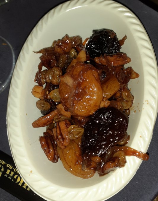 Угощение от подруги, марокканская вкуснота. Изюм, орехи, сливы, вино,корица,силан,курага,перец чёрный, чуток соли. Праздничная трапеза.