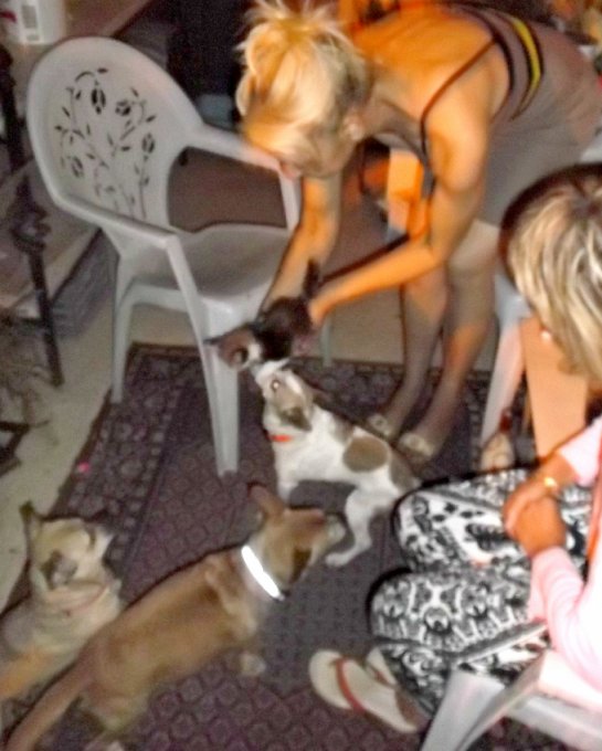 Уличная кошка притащила нам котят во двор. вчера был др. Пять лет, получили все, всяких вкусняшек. Знакомим котиков с нашими собаками. сейчас осталось две.Бамби был старенький уже,