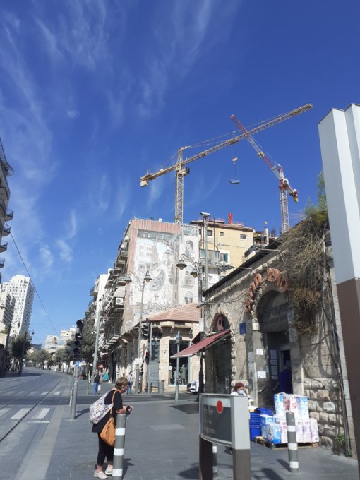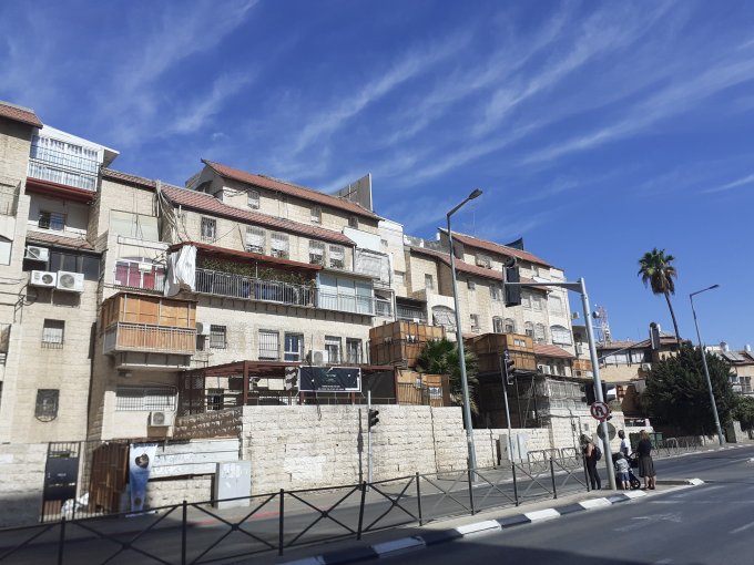 Это мы вышли пройтись до поликлиники. Народ поставил шалашей на балконе ( у нас праздник Суккот)