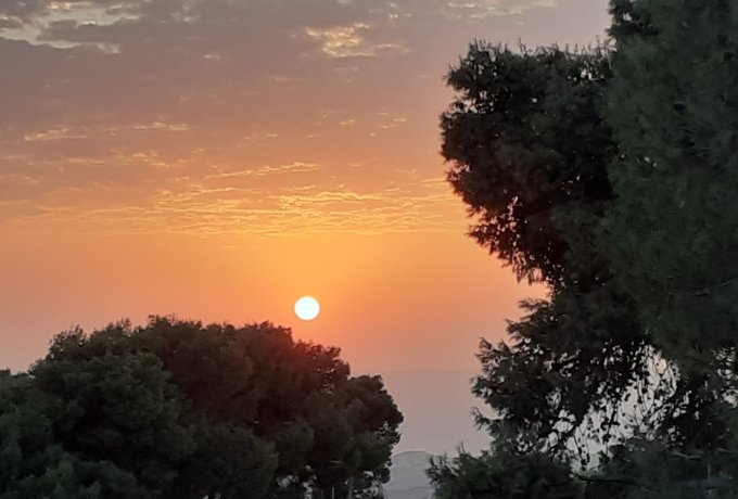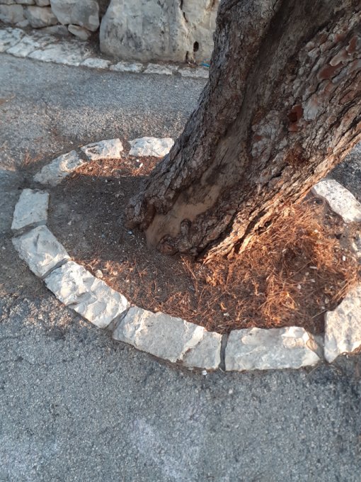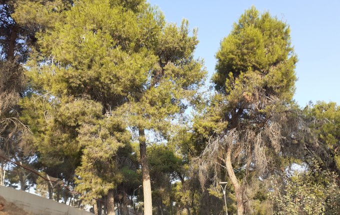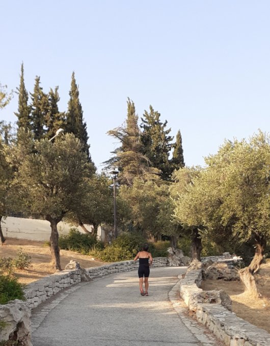 Сегодня сделала себе маршрут. Вот от этого дерева, ходила до фонтана, в сосновой аллее. Около километра. Поэтому по теньку нарезала круги. Вышла поздно. Солнце поднялось и я пошла домой. Но тень ещё была