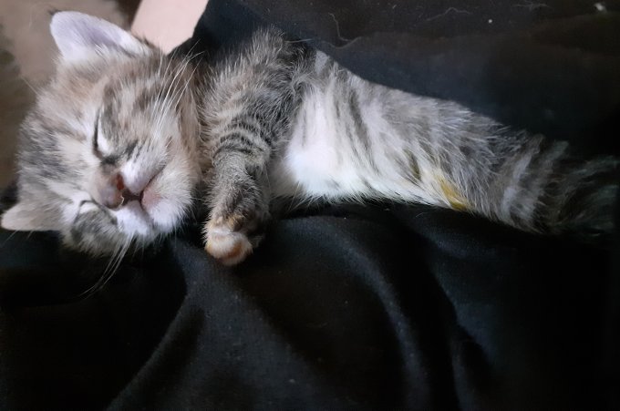 Вчера был перерыв между градом и дождём. Минут пять. Какая то тварь. Перекинула через забор 2.20 кошечку. Лапы разбитые напрочь. В кровь. Пока у врача не были. Где то ей около трёх недель. Насчёт выживет не знаю.Но постараемся. Муж завтра купит специальное молоко для выкармливания котят.