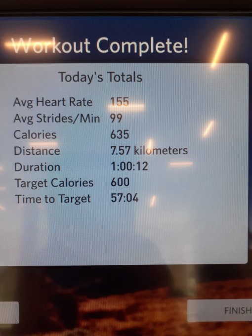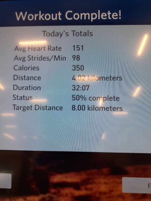 Тоже самое сегодня на кардио. Но не получилось никак разогнать пульс до нужных цифр. Короче плюнула. Итак 5 км. 40 минут. 20 мин.произвольно. Как карта ляжет. Прогулку дома допишу. Результатами не очень довольна. Ну главное начать. Потихоньку вернусть к хотя бы минимальным нагрузкам. Сегодня попытаюсь заполнить дневник питания. Всё же лучше чем сидеть ныть дома.