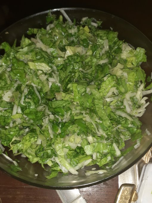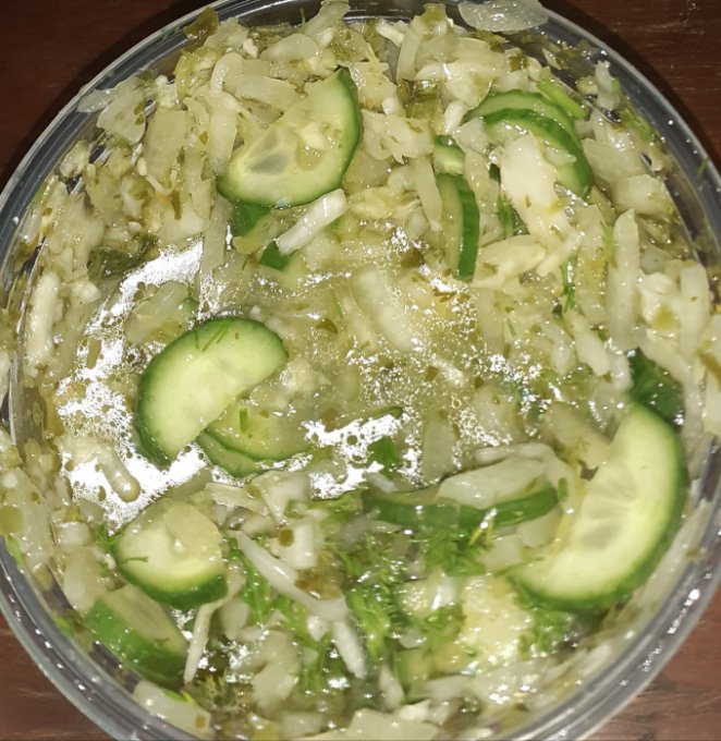 Вот такой содержательный ужин, но не мой. Салат огцрцовый остый.