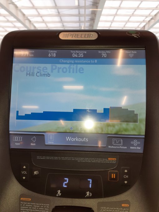 Чем мне понравился hill climb, что дается команда когда удлинить шаг, от 81 до 85 см. Сфотать не могу, ибо убьюсь, зато могу разогнать чсс до 150, час сегодня не буду делать, пойду погуляю чуток, забыла включить шагомер, сколько записала пусть будет