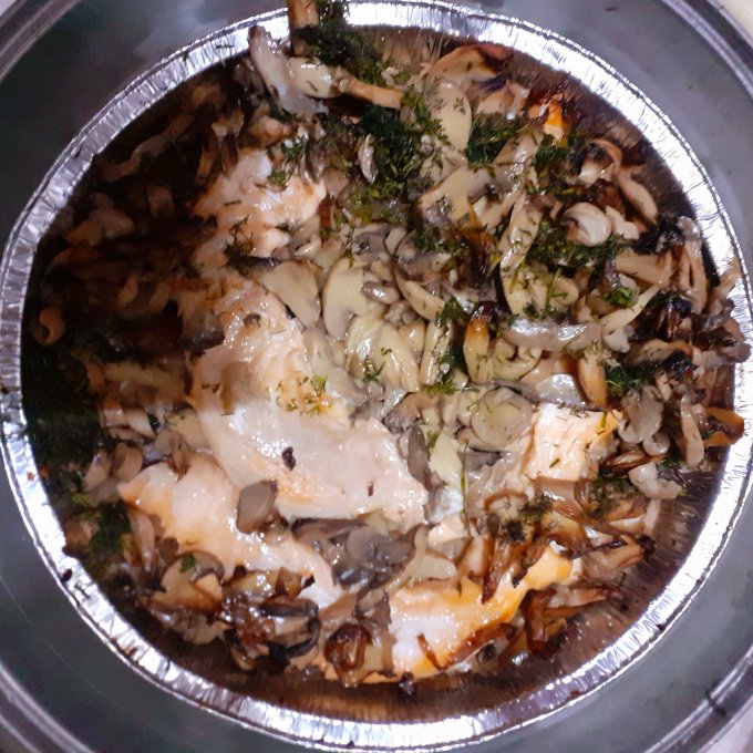 Шампиньоны с лососем, немного гриль, чуток подогретые. Очень нежные получились. Хотя больше люблю сырые в салате.