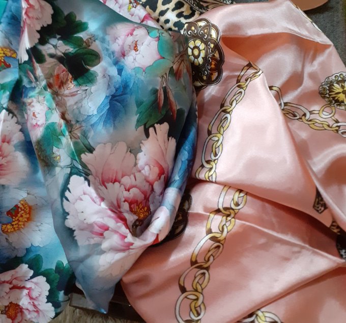 Помните мы обсуждали косынку $3 и натуральный шёлк. Вдруг кому сгодится, что бы не обманули.Я заказала такую косынку . Конечно это не шёлк вообще. Она мила и симпатичная. Но ткань, даже плетения нити, блеск изнанка очень сильно выдают синтетику. У шёлка она матовая, синтетика блестит.Тем более у меня есть с чем сравнить Хотя за такие деньки качество очень хорошее. Принт, швы аккуратные,без всяких косяков. Носить я её конечно буду.