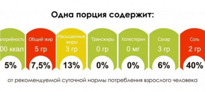содержании сахара, соли и жиров в продуктах. Предупреждение о том,