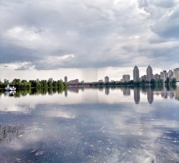 Та же набережная, но с другого ракурса, вдалеке полосы дождя,