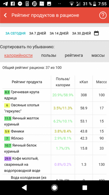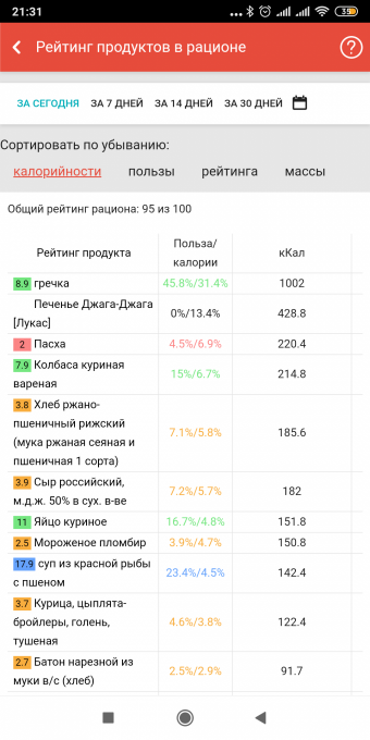 одного и того же продукта, прежде чем добавить себе в дневник,