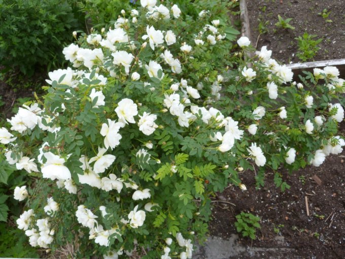 Сегодня заметила, как за зиму подрос куст, посаженный соседкой прямо под моим балконом. Скоро цветы рукой доставать смогу. Как раз цветёт сейчас вовсю. А вот как этот куст называется - не знаю.