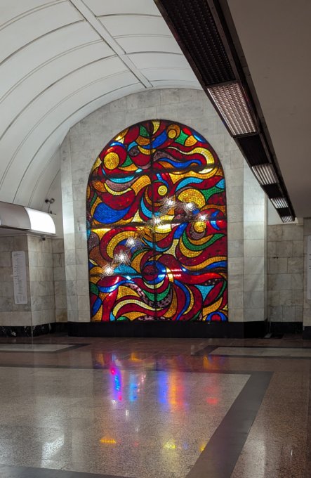 ,а потом приехал, начинаешь что-то примелькавшееся с детства оценивать свежим глазом. И оно красивое такое, даже метро. Возможно, у меня плебейский вкус, но витражи обожаю. Неизменно радуют, как новогодняя ёлка.