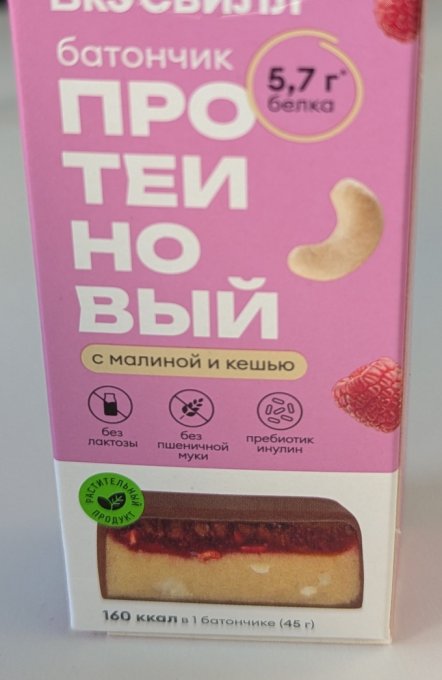 Герой дня - протеиновый батончик из ВВ на сиропе цикория, что б это не значило. Вообще-то я хотела протеиновые чипсы, но, конечно же, их не было. Взяла наобум и не прогадала - оно на зожных компонентах, и 13 г углеводов на 100 г, то есть в батончике что-то в районе 6. Калорийность приемлемая, вкус понравился. Кисленький малиновый сироп его очень облагораживает. Недостаток - довольно дорого. Но завтра куплю ещё один