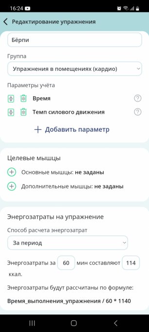 делает бёрпи: как вы его в дневник заносите? Если сами создавали