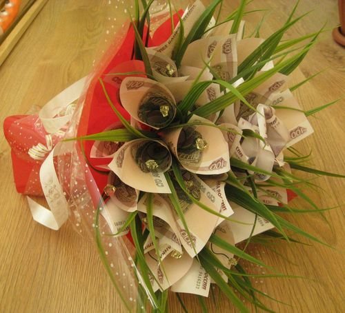 бумага (красная - 5 000, синяя - 2000 и т.д.). Это фокус конечно,