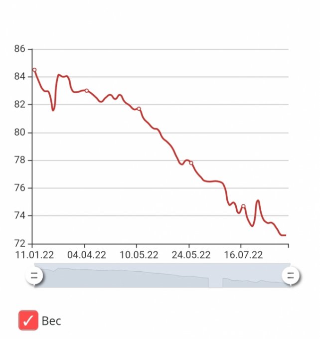 осталось 4,5 кг. Вес на сегодня 72,5 кг. Ставлю план к 1 октября