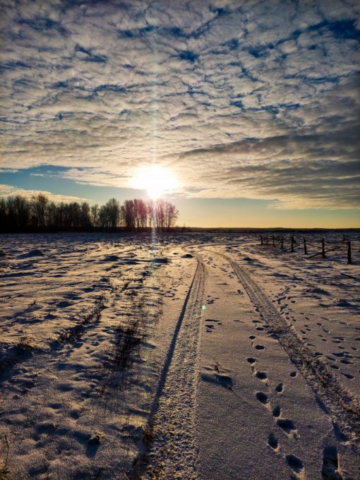 снег блестит, морозец, солнце яркое, -20 градусов на улице, а в