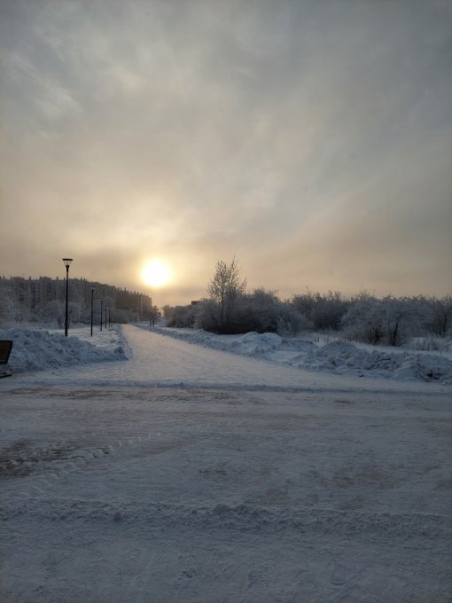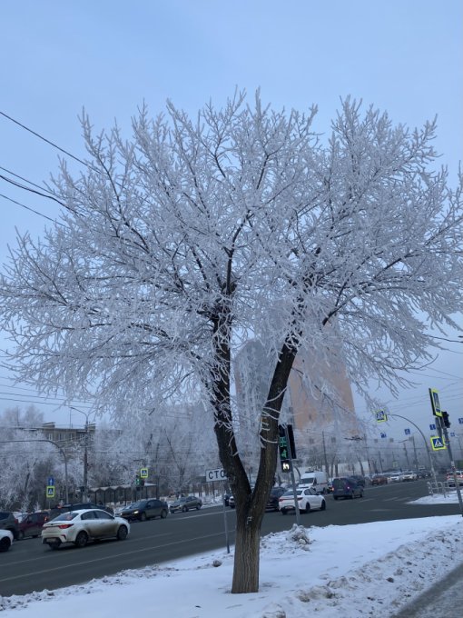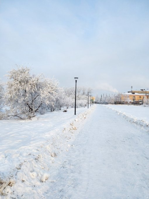 любви❤️❤️❤️😄😄😄 Днём иней, все белое и в снегу, на фото сквер рядом