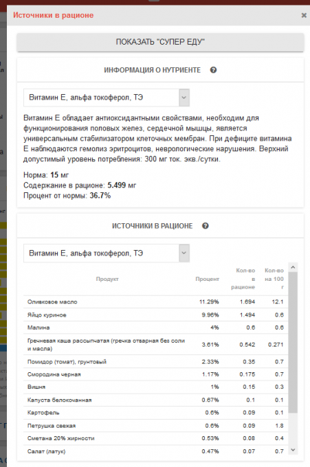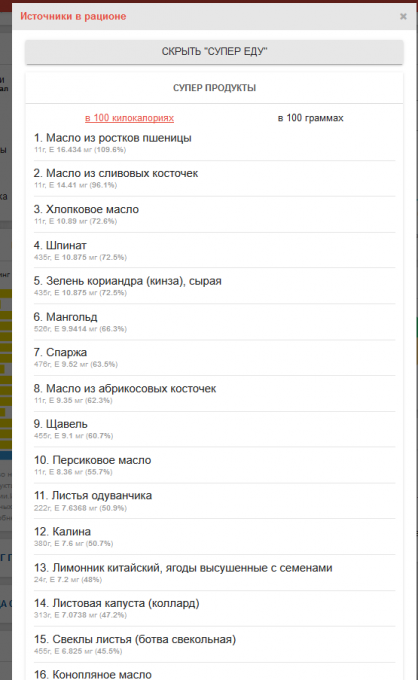 супер-продуктах его больше. Если бы у меня была капсула Е я бы её
