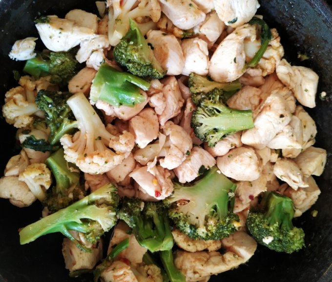 4. Когда филе уже будет готово, добавить замороженную капусту, 2