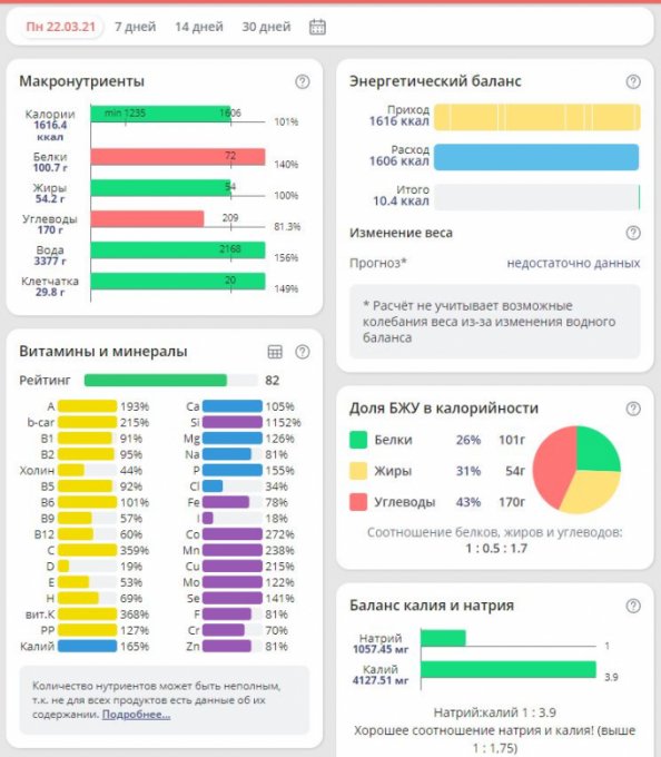 | Итого за день | 3162 | 1643 | 67 | 67 | 176 |