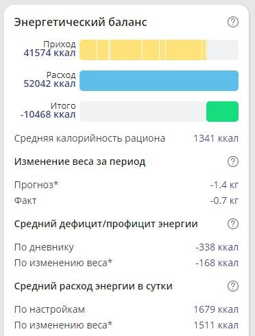неделю. Соответственно, запас калорий для дефицита мизерный.