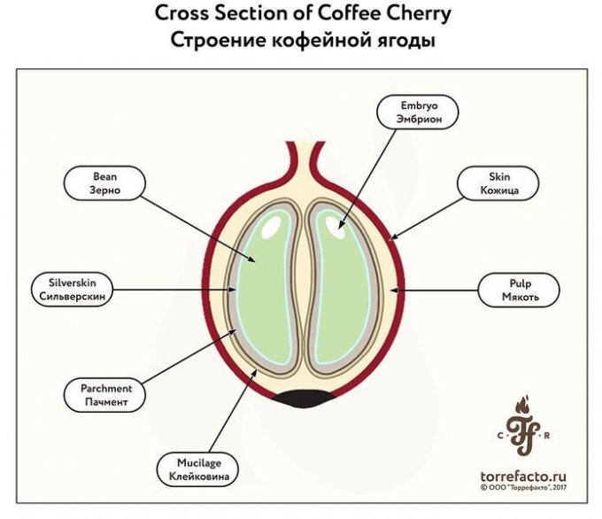 А что внутри ягодки? Основную часть плода занимают два зерна