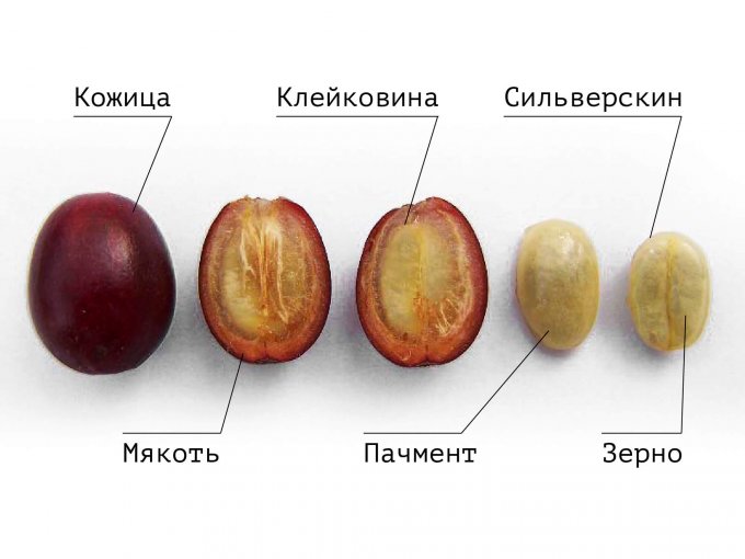 Пачмент окружён клейковиной, потом идёт небольшой слой мякоти, и