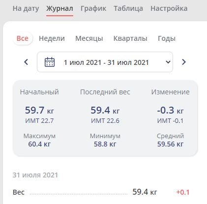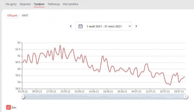 Вес июля - плюс-минус 59 кг, что примерно на 1 кг меньше