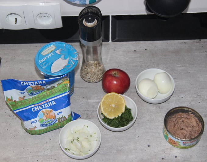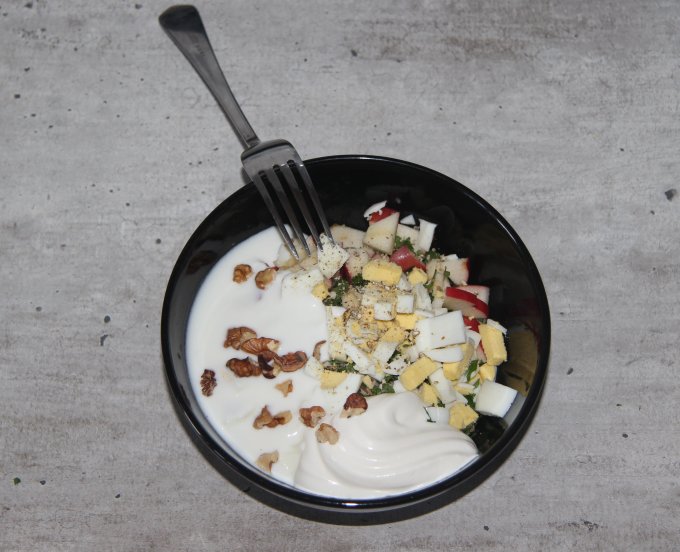 при заправке сметаной с йогуртом в равных пропорциях. Bon