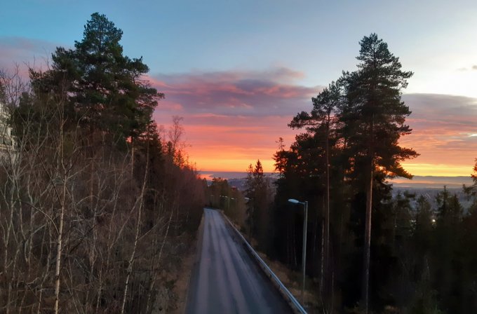 Ходьба по норвежским горам. Впечатление такое, что уже начинается весна, тепло, солнечно, на лужайках начинает зеленеть трава, у цветов набухают бутоны.
